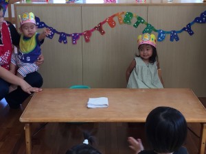 ひよこ・りす組合同で、エプロンシアターとエビカニビクスを踊って楽しみました。