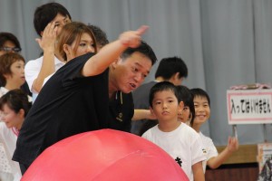 きりん組は親子ゲーム、リレー、マーチング、エイサーを披露します。