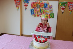 誕生祝いの入場からウキウキ♪手を振って声かけに応えます^^